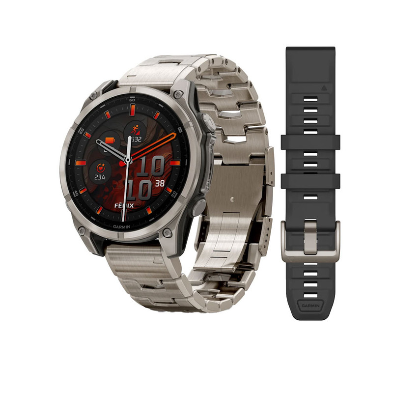 ساعت هوشمند گارمین مدل Fenix 8 - 51mm Titanium، مناسب برای ورزش، ضد آب، کنترل موسیقی، کنترل سطح اکسیژن خون، بند سیلیکونی، با حافظه داخلی 32 گیگابایت