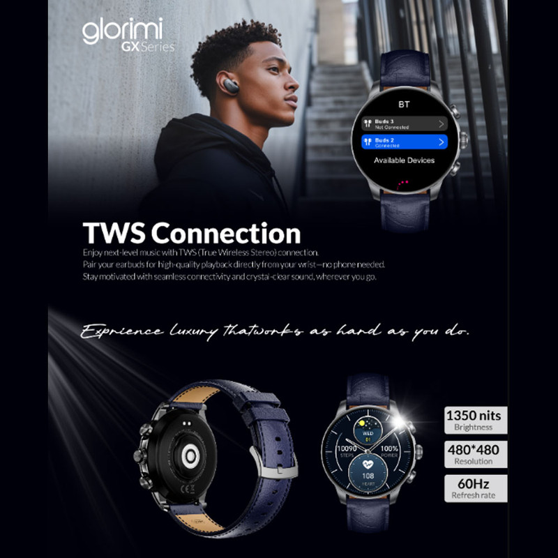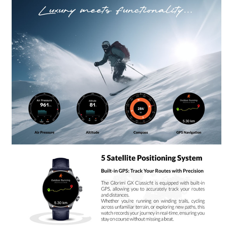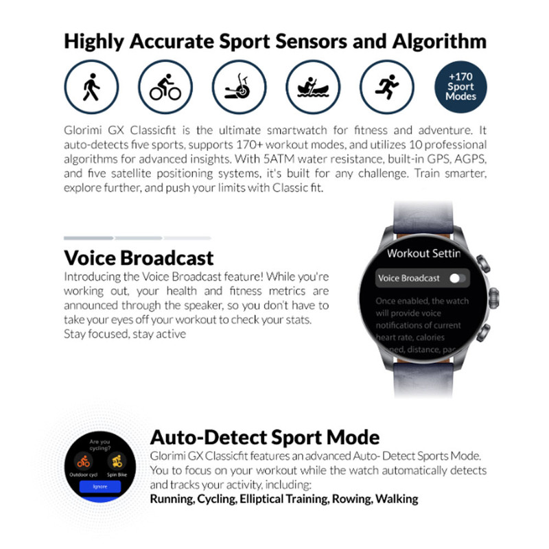 ساعت هوشمند 47 میلی متری گلوریمی مدل GX CLASSICFIT (LIMITED EDITION) بند چرمی