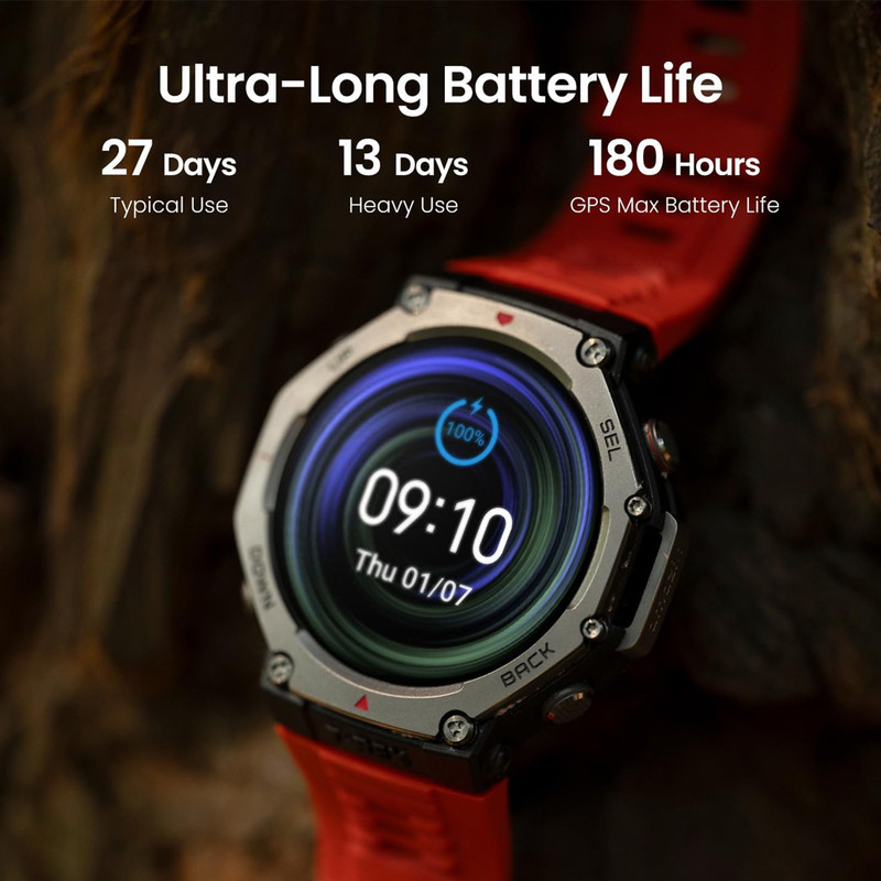ساعت هوشمند 49 میلیمتری امیزفیت مدل T-Rex 3 با بند سیلیکونی