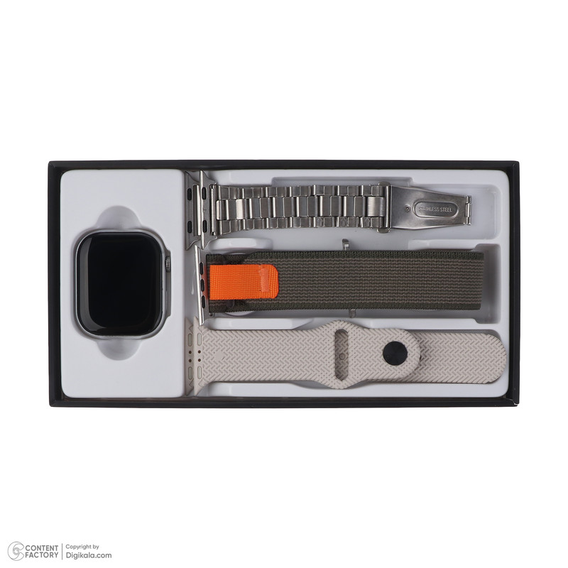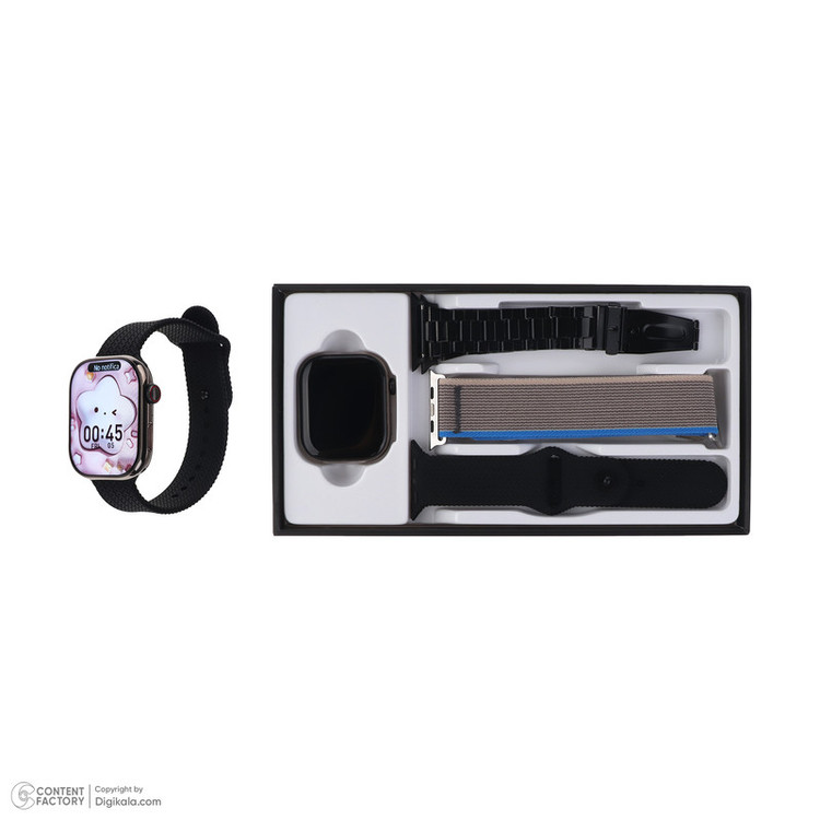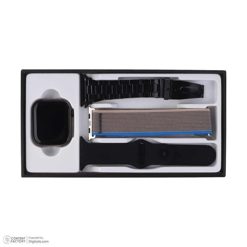 شارژر مگنتی / مجهز به سه نوع بند / دارای یک بند فلزی با قفلبند کلیپسی / مجهز به یک بند برزنتی با قفلبند چسبی