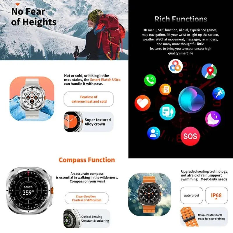 صفحه نمایش رنگی , صفحه نمایش لمسی , دوربین , کنترل موسیقی (Music Player) , کنترل سطح اکسیژن خون , قابلیت مکالمه از طریق بلوتوث , پشتیبانی از زبان فارسی در منو و سیستمعامل , قابلیت تغییر طرح ساعت یا تم , ضد آب
