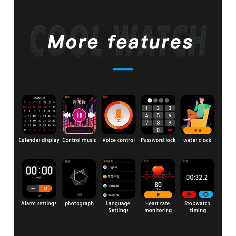 قابلیت اندازه گیری فشار خون پایش خواب قابلیت ترک کردن ورزش های مختلف ریموت دوربین ضربان قلب آب و هوا چند گیم و نشان دادن پیامهای گوشی