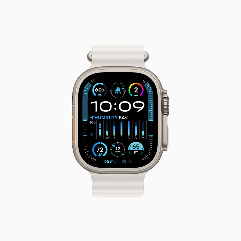 اگر به دنبال ماجراجویی هستید و ساعت هوشمند همهچیز تمامی میخواهید که از هر نظر عملکرد بسیار خوبی داشته باشد، بدون شک ساعت هوشمند اپل مدل Ultra 2 titanium 49mm میتواند یکی از بهترین انتخابهای ممکن برای شما باشد. به نسبت ساعتهای هوشمند سری 9، این ساعت از مشخصات فنی مناسب و بسیار قدرتمندتری بهره برده است. در نمای روبهرویی شاهد حضور صفحهنمایش بزرگ با ابعاد 1.92 اینچ و رزولوشن 410×502 پیکسل هستیم که توانایی نمایش فوقالعاده 338 پیکسل در هر اینچ را دارد. تا همینجا میدانیم که با یکی از قدرتمندترین صفحاتنمایش در بین ساعتهای هوشمند جهان روبهرو هستیم اما شگفتزده میشوید وقتی که بدانید این صفحهنمایش توانایی ارائه حداکثر روشنایی 3000 نیت (nits) را هم دارد. میزان روشنایی که سبب شده تا نهتنها در شرایط نوری متنوع، بلکه برای مثال زیر تابش مستقیم نور خورشید هم وضوح تصویر بینظیری را از آن شاهد باشید. متریال تیتانیموم برای فریم و تکنولوژی ساخت پیشرفته سبب شده تا این ساعت از استاندارد IP6X پشتیبانی کند و در نهایت توانایی مقاومت در عمق 100 متری آب را هم دارد. پس در شرایط جوی متنوع و ورزشهای آبی بدون هیچ نگرانی از این ساعت هوشمند استفاده کنید و لذت ببرید. حضور برنامههای ورزشی متنوع و برنامههای سلامت متنوع که از مهمترین آنها میتوانیم به سنجش اکسیژن خون، کنترل ضربان قلب و سنجش دمای بدن اشاره کنیم سبب شدهاند تا این ساعت هوشمند بیش از خودتان به فکر سلامتیتان باشد. باتری قدرتمند با میزان ظرفیت 542 میلیآمپرساعت هم از دیگر مشخصات در نظر گرفته شده برای این ساعت هوشمند قدرتمند و پرچمدار است. گفتیست که این ساعت با آیفون XS (و بعد از آن) سازگار است؛ البته برای استفاده از تمامی امکانات ساعت، iOS 18 نیاز است.