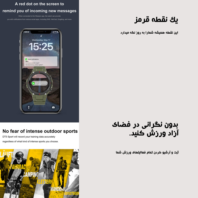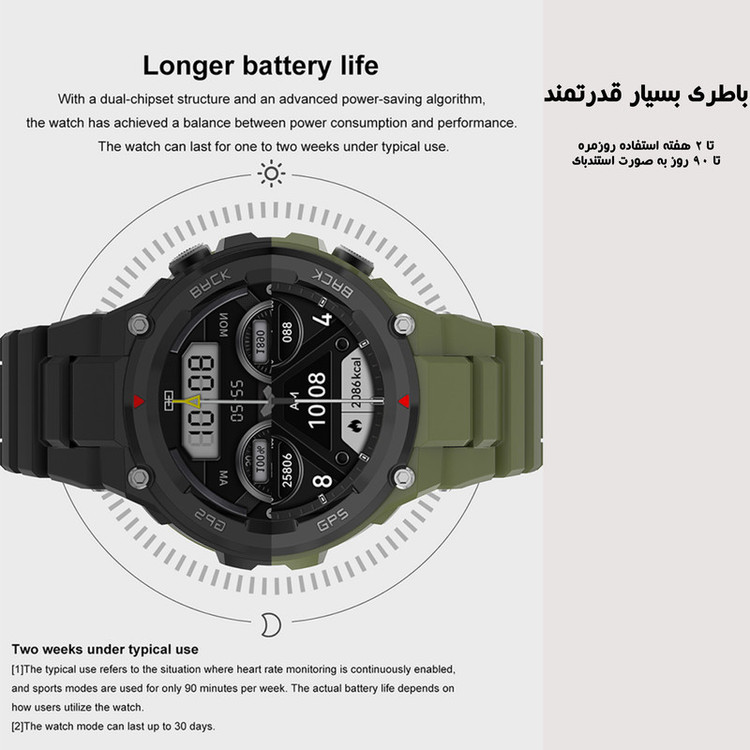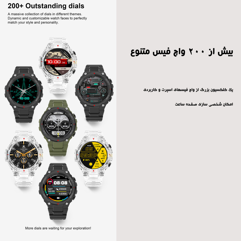 قابلیتهای ساعت هوشمند: صفحه نمایش رنگی , صفحه نمایش لمسی , کنترل موسیقی (Music Player) , کنترل سطح اکسیژن خون , قابلیت مکالمه مستقیم , قابلیت مکالمه از طریق بلوتوث