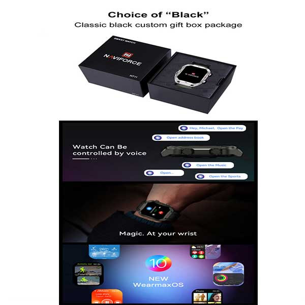 قابلیتهای ساعت هوشمند: صفحه نمایش رنگی , صفحه نمایش لمسی , کنترل موسیقی (Music Player) , کنترل سطح اکسیژن خون , قابلیت مکالمه از طریق بلوتوث , پشتیبانی از زبان فارسی در منو و سیستمعامل , ضد آب