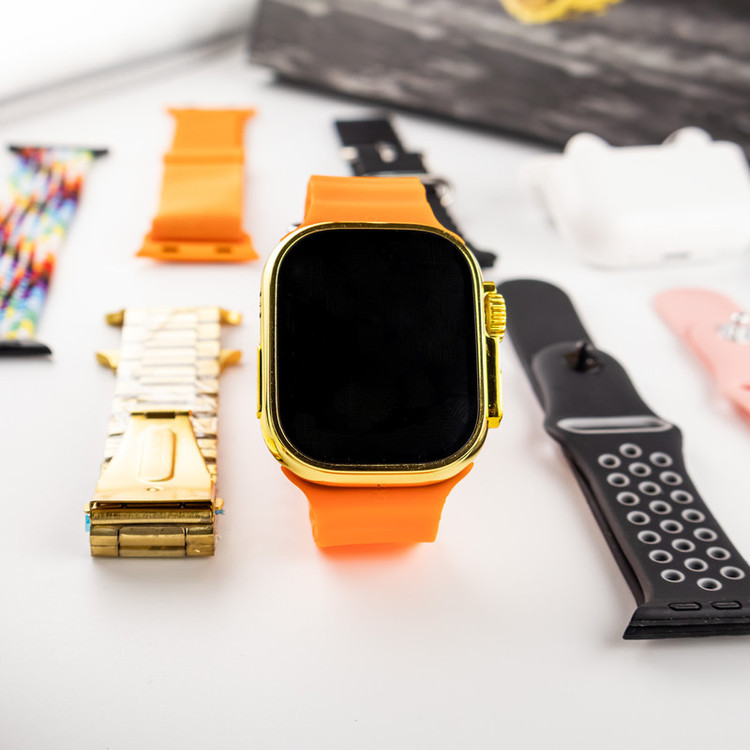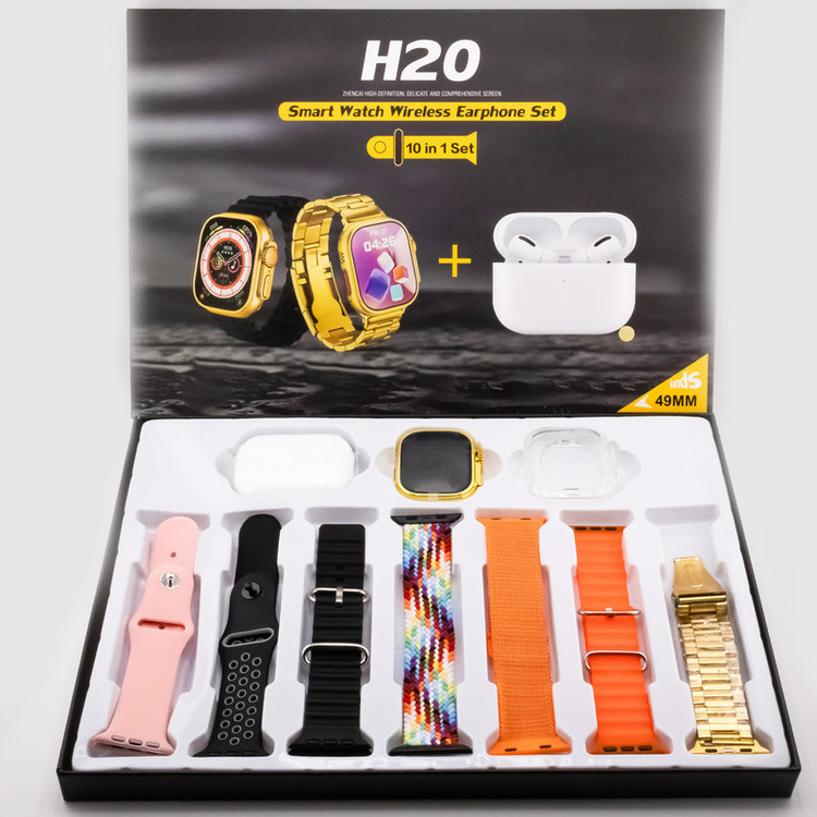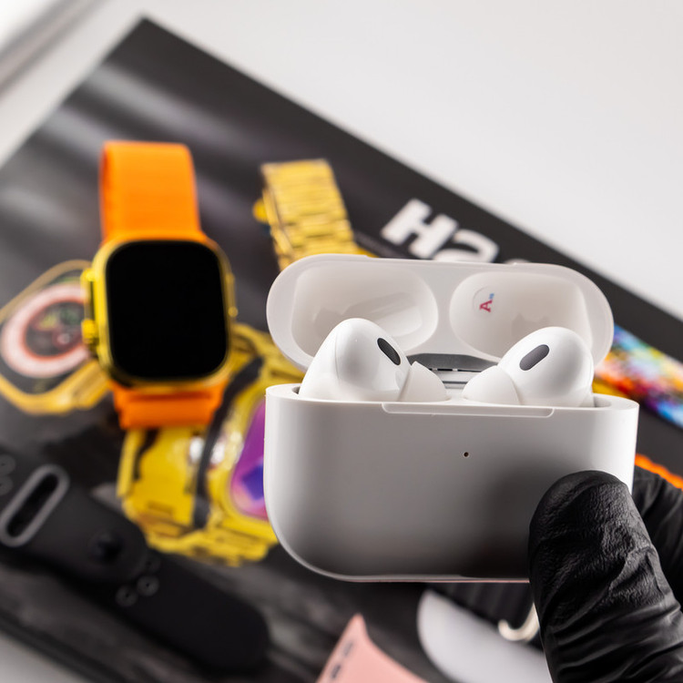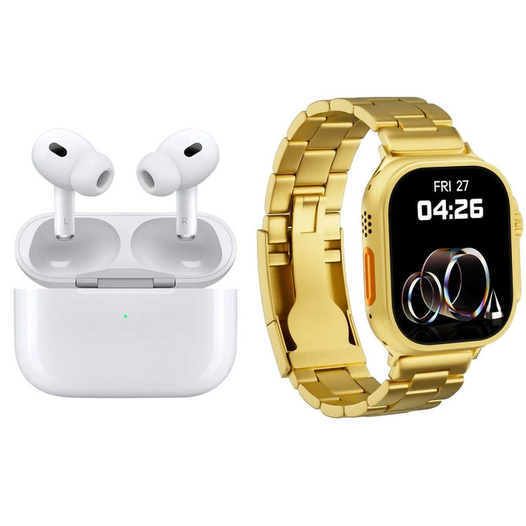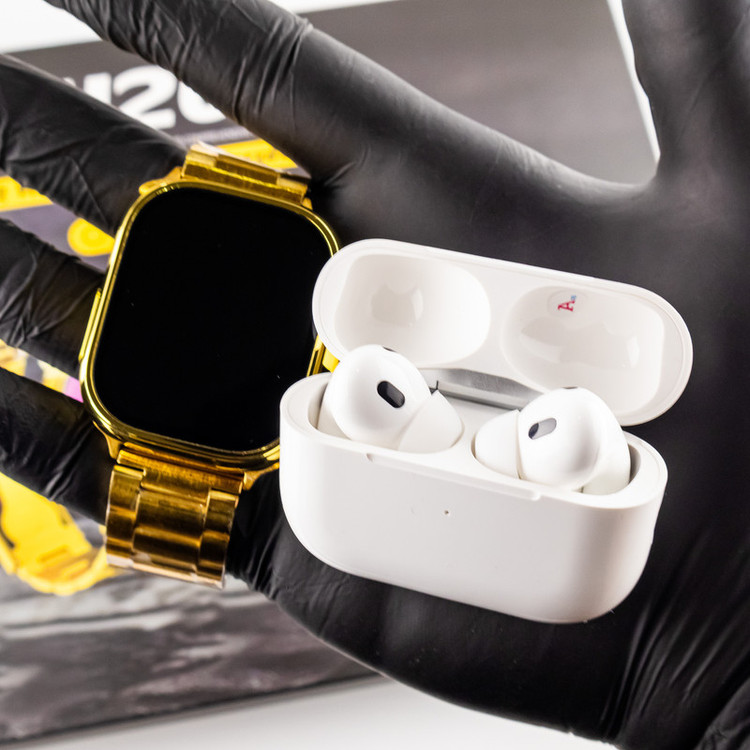 ۷ ست کامل بند (یک عدد فلزی ، ۴ عدد سلیکونی ، ۱ عد پارچه ای و ۱ عدد کنفی ) - ایرپاد پرو - گارد محافظ شفاف ساعت - وایرلس شارژ ساعت - همراه یک کابل شارژ لایتنینگ و دفترچه راهنما