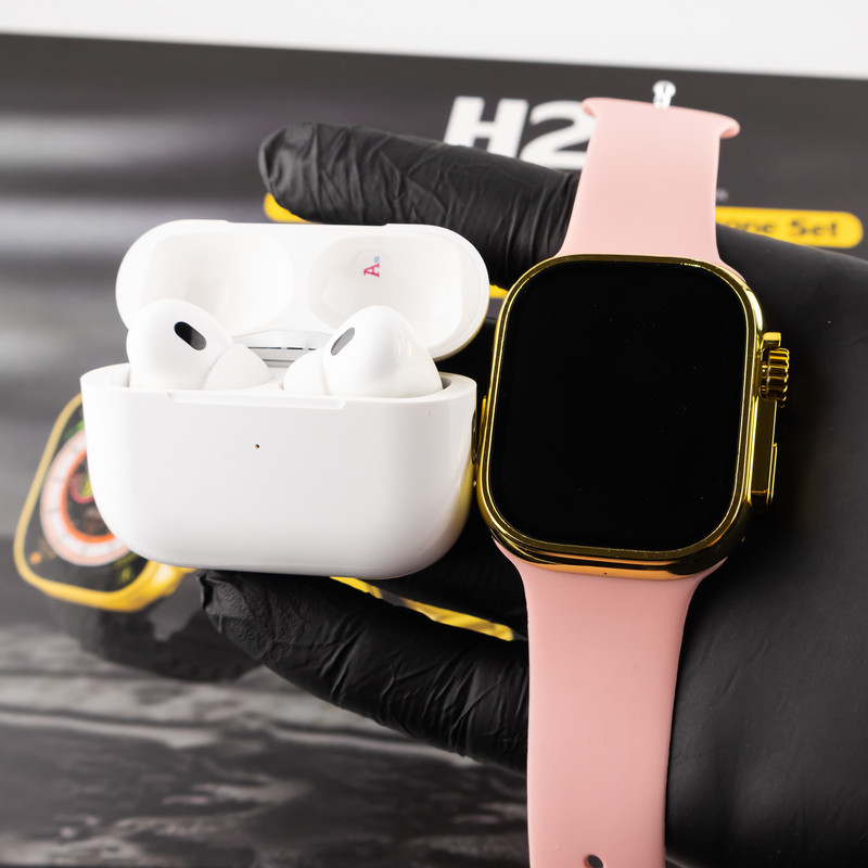 ۷ ست کامل بند (یک عدد فلزی ، ۴ عدد سلیکونی ، ۱ عد پارچه ای و ۱ عدد کنفی ) - ایرپاد پرو - گارد محافظ شفاف ساعت - وایرلس شارژ ساعت - همراه یک کابل شارژ لایتنینگ و دفترچه راهنما