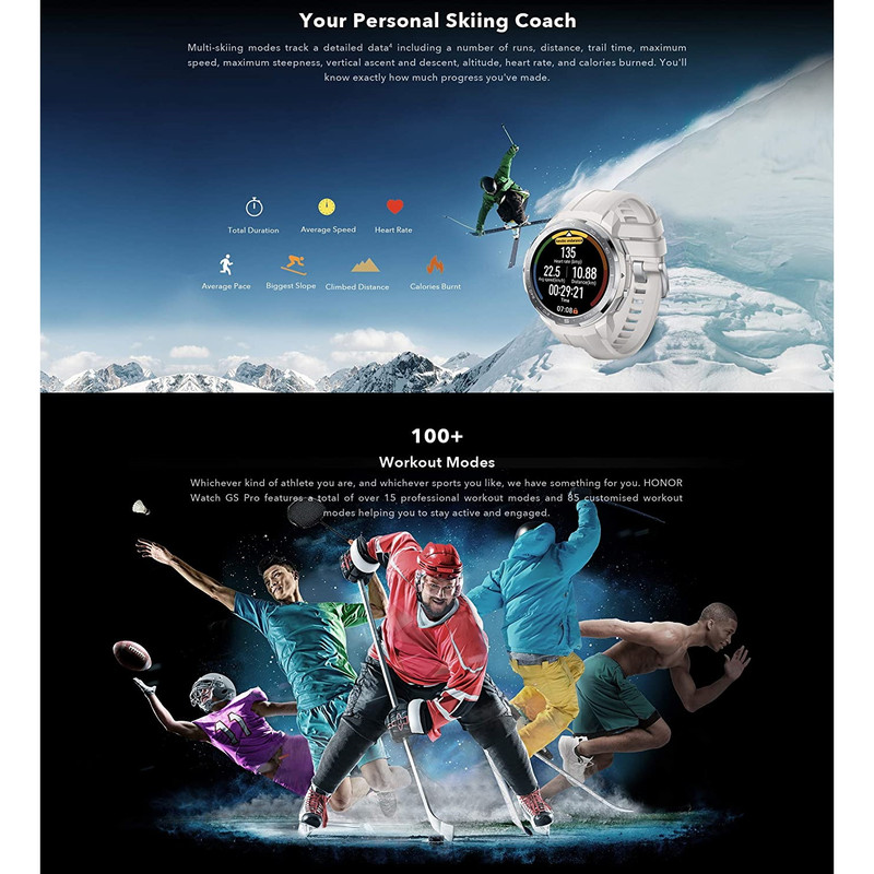 شتاب سنج, ژیروسکوپ, سنجش ضربان قلب, SpO2 جلو شیشه, پشت پلاستیک, نقرهای ضدزنگ bezel ring, dial 5ATM water resistant MIL-STD-810G compliant