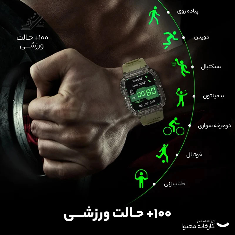 قابلیتهای ساعت هوشمند: کنترل موسیقی (Music Player) , کنترل سطح اکسیژن خون , قابلیت مکالمه از طریق بلوتوث