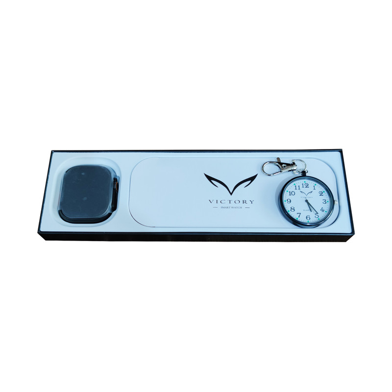 آویز ساعت ویکتوری بند پارچه ای مشکی بند سیلیکونی مشکی کابل شارژ مگنتی