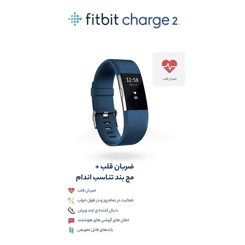 مچبند هوشمند «Fitbit Charge 2» یکی دیگر از تولیدات کمپانی مشهور فیت بیت برای آنالیز حرفهای فعالیتهای ورزشی مختلف است. Fitbit Charge 2 هنگام ورزش به شکل مداوم ضربان قلب را اندازهگیری میکند و ضمن اندازهگیری بسیار دقیق کالری سوزاندهشده، تصویری واضح از تأثیر شدت ورزش روی ضربان قلب میدهد. سنسور شتابسنج مچبند، تعداد گامهای برداشتهشده، مسافت طیشده و زمان کلی ورزش را محاسبه میکند. علاوهبراین ارتفاعسنج مچبند، هنگام بالارفتن از پلهها و کوهنوردی ارتفاع صعود را به دست میآورد. با ضربهزدن به صفحهنمایش OLED مچبند، میتوان اطلاعات ذخیرهشده را مشاهده کرد. اگر بدون تحرک باقی بمانید، یادآور مچبند هر ساعت شما را تشویق میکند که حداقل 250 قدم راه بروید. Fitbit Charge 2 به شکل خودکار زمان خواب شما را تشخیص میدهد و وضعیت خواب را آنالیز میکند. با تنظیم ساعت بیدارباش، مچبند با هشدار لرزشی شما را بیدار میکند. مچبند فعالیتهای ورزشی مختلف مانند پیادهروی، دویدن، دوچرخهسواری و حتی یوگا را به شکل خودکار پیگیری میکند؛ البته میتوان به شکل دستی یک ورزش مشخص را انتخاب کرد. اطلاعات فعالیتهای ورزشی تا 7 روز (ضربان قلب هر 1 ثانیه) و اطلاعات فعالیتهای روزانه تا 30 روز (ضربان قلب هر 5 ثانیه) روی حافظهی مچبند ذخیره میشود. برای استفاده از قابلیتهای مچبند باید اپلیکیشن «Fitbit» روی گوشی نصب باشد. این اپلیکیشن روی سیستمعاملهای اندروید 4.3 به بالا و iOS 8.0 به بالا و ویندوز فون 8.1 و 10 قابلنصب است. با نصب اپلیکیشن، ارتباط بین مچبند و گوشی از طریق بلوتوث و طی چند مرحلهی ساده برقرار میشود. پس از برقراری ارتباط، تماسها و پیامکهای دریافتی روی صفحه اطلاعرسانی میشود. اپلیکیشن فیت بیت امکانات فراوانی شامل آنالیز تغییرات ضربان قلب، نمایش مسیر شخص روی نقشه و کمک به کاهش وزن دارد