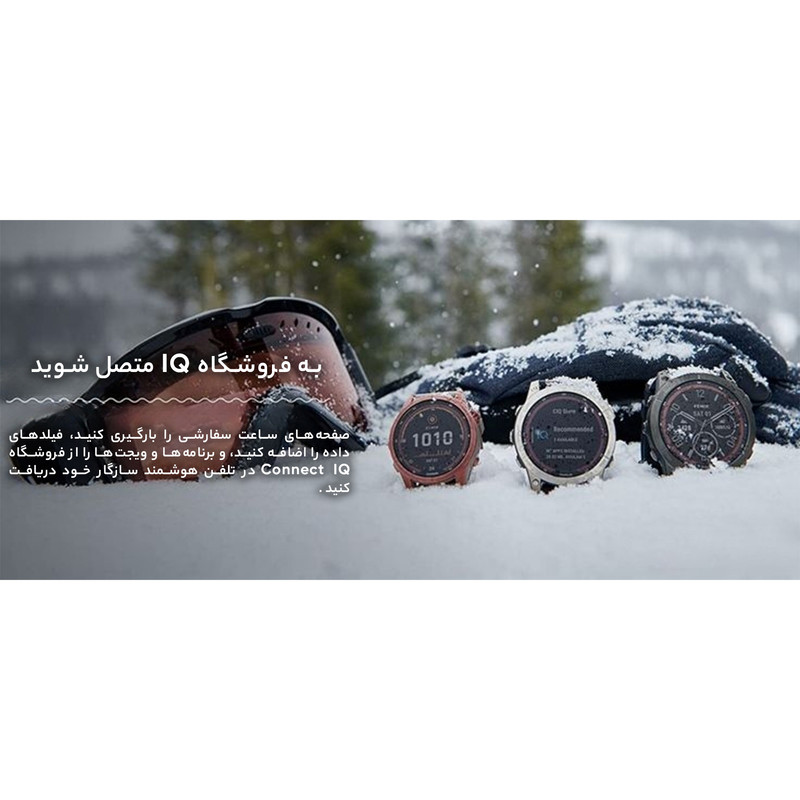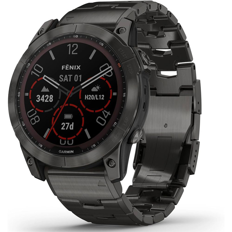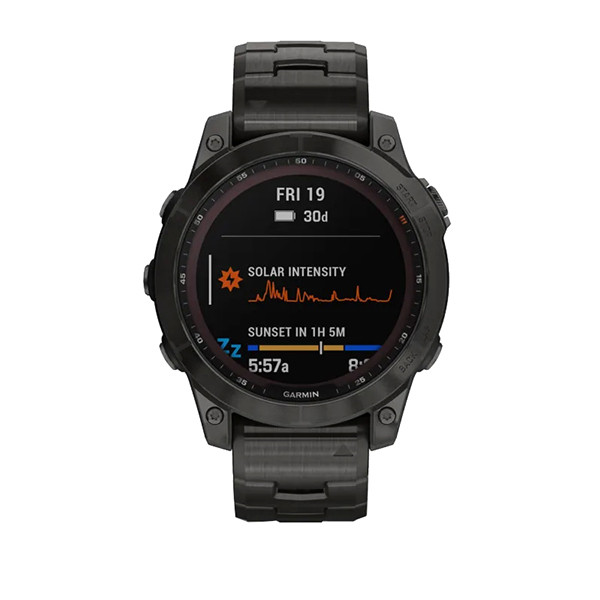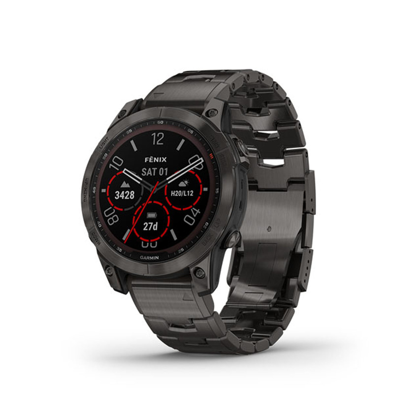 گارمین فنیکس 7 سافایر سولار با بدنه تیتانیومی مشکی و یک عدد بند تیتانیوم مشکی و یک عدد بند سیلیکونی مشکی ارائه میشود . دارای چراغ قوه نیست .بند این ساعت کوییکفیت 22Quickfit میلیمتری است . جنس دور صفحه این ساعت تیتانیوم است ، از این جهت وزن ساعت بسیار کاهش یافته . اما جنس صفحه این ساعت یاقوت مصنوعی یا همان سافایر Sapphire است . ساعتی بسیار زیبا و قیمت استثنائی ، مناسب میهمانی ها و قرار های رسمی و البته ورزش .
