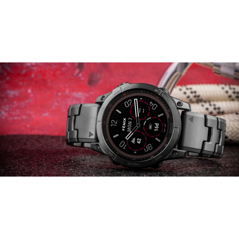 سری هفتم از ساعت های محبوب گارمین فنیکس با تحولاتی اساسی نسبت به سری ششم ، در سال 2022 معرفی شده . طراحی این ساعت نسبت به مدل قبلی بسیار زیباتر شده و دیگر از پیچ های دور صفحه خبری نیست . ساعت فنیکس (سری7) Garmin Fenix 7 Series برای اولین بار در فنیکس ها دارای صفحه نمایش لمسی Touch Screen است . به این صورت که میتوانید در هنگام نیاز صفحه لمسی را فعال و غیر فعال کنید . شارژ خورشیدی و صفحه نمایش سافایر و لمسی همزمان درساعت های فنیکس 7 عرضه شده . در مدل های Fenix 7X فنیکس 7ایکس یک عدد چراغ قوه ال ای دی LED Flashlight اضافه شده که در مواقع ضروری بسیار کاربرد دارد . Garmin Fenix 7 Sapphire Solar Leather Band
