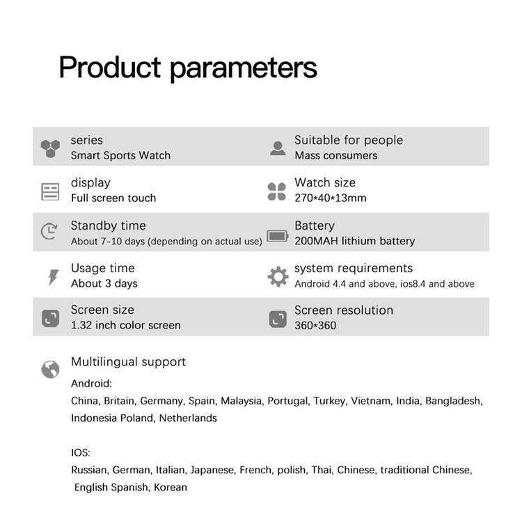 قابلیتهای ساعت هوشمند: صفحه نمایش رنگی , صفحه نمایش لمسی , دوربین , کنترل موسیقی (Music Player) , کنترل سطح اکسیژن خون , قابلیت مکالمه از طریق بلوتوث