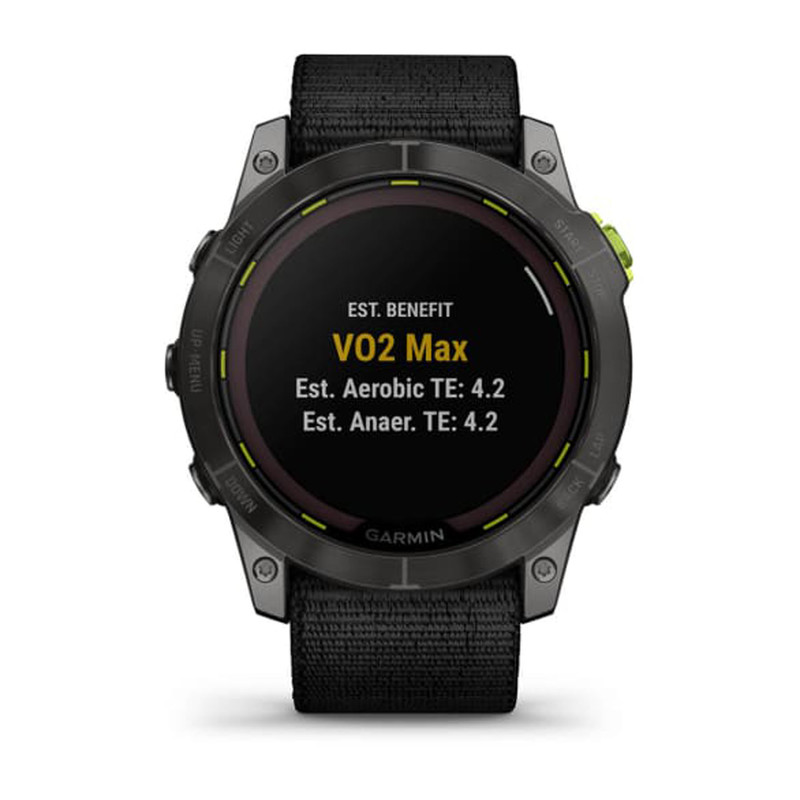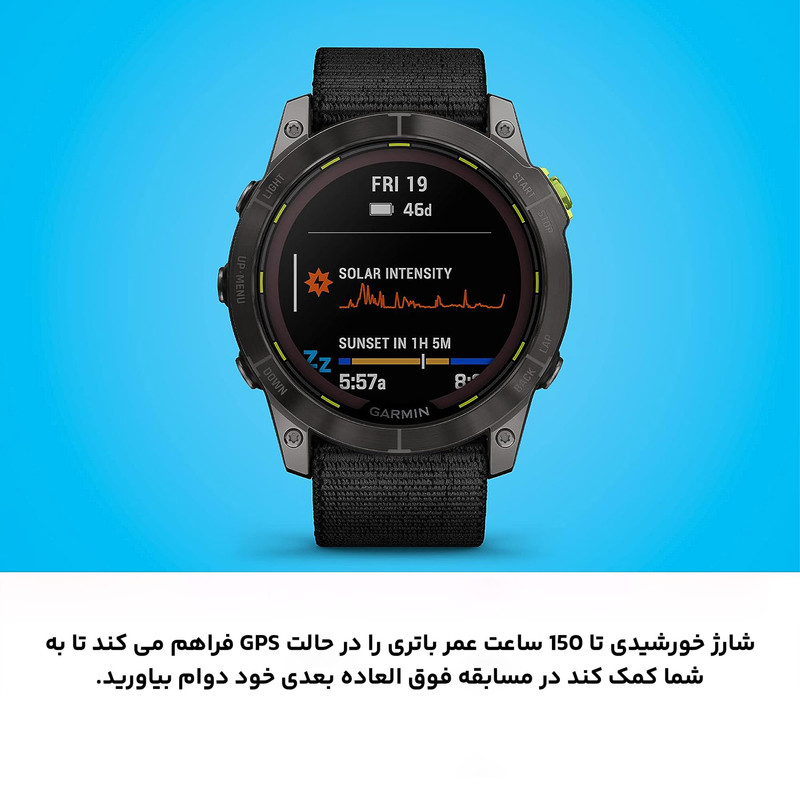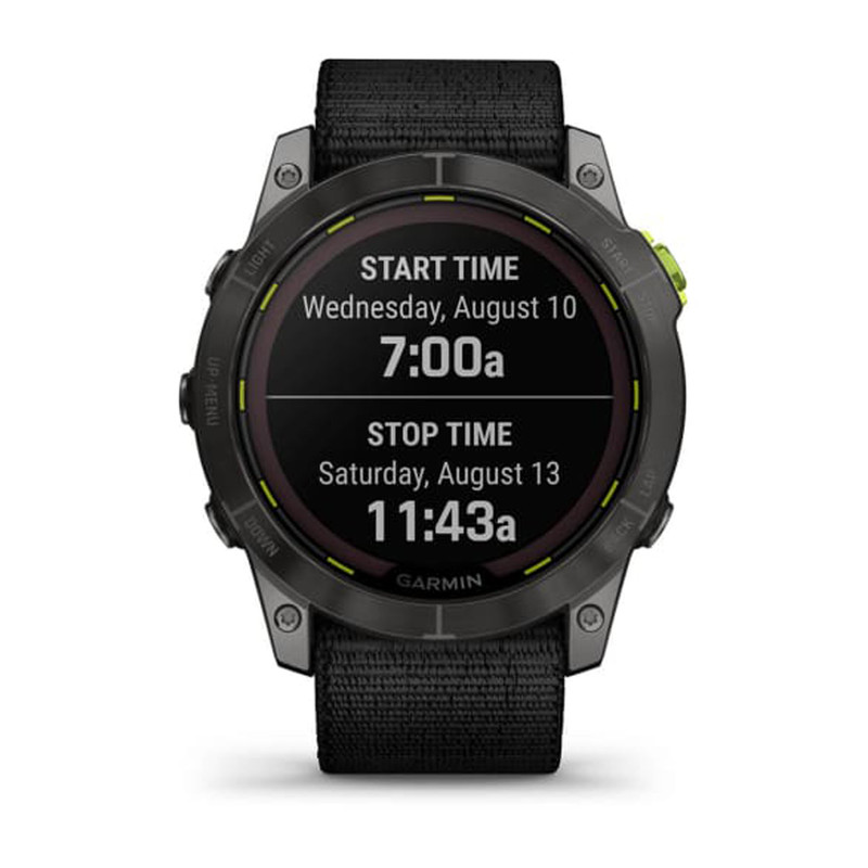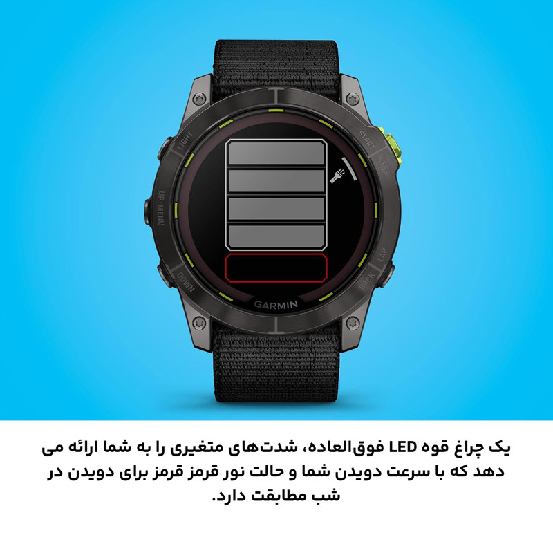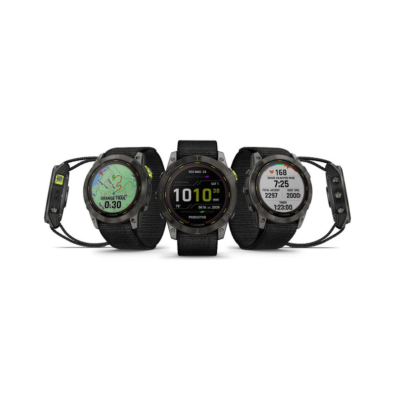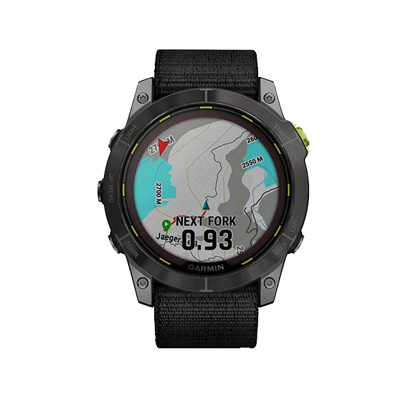 ساعت گارمین اندیورو 2 – Garmin Enduro 2 sport watch محصول آگوست 2022 است . یک ساعت مالتی اسپرت با وزن سبک و قابلیت های استثنایی . این ساعت دومین مدل از سری ساعت های محبوب endure گارمین است . خصوصیت بارز این مدل وزن بسیار سبک و البته باطری بسیار قوی این ساعت است . دور بدنه این ساعت از جنس تیتانیوم است . این ساعت دارای صفحه نمایش پاورسافایر Power Sapphire لمسی TochScreen و دارای شارژ خورشیدی Solar Charging است . ساعت اندیورو 2 همانند ساعت فنیکس 7 ایکس دارای چراغ ال ای دی LED Flashlight دو رنگ (سفید و قرمز) برای استفاده به عنوان چراغ قوه و همچنین چراغ هشدار است . صفحه نمایش این ساعت بزرگتر شده و سایز آن 1.4 اینچ میباشد.
