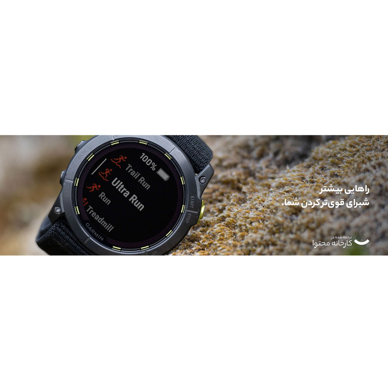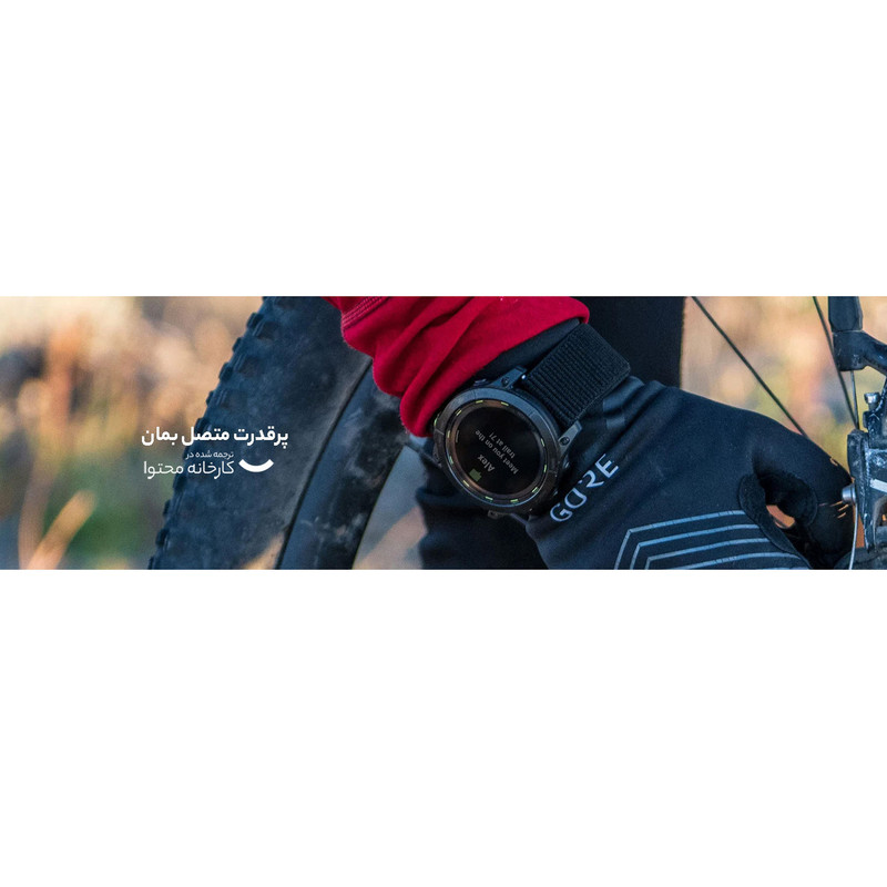 به همراه این ساعت یک عدد بند نایلونی چسبی 26 میلیمتری به نام Sport loop که بسیارسبک و نرم است وجود دارد . این بند مناسب ورزشکارانی ست که به ساعت سبک احتیاج دارند و همچنین بسیار راحت و سریع باز و بسته میشود . ساعت گارمین اندیورو 2 دارای یک عدد بند سیلیکونی 26 به رنگ مشکی هم هست . باطری این ساعت در حالت Smartwatch تا 34 روز و با شارژ خورشیدی Solar تا 46 روز روشن میماند . همچنین عمر باطری این ساعت در حالت Power Saving Mode تا 111 روز و با سولار تا 550 روز است .