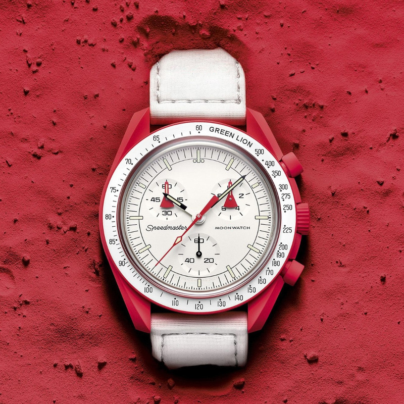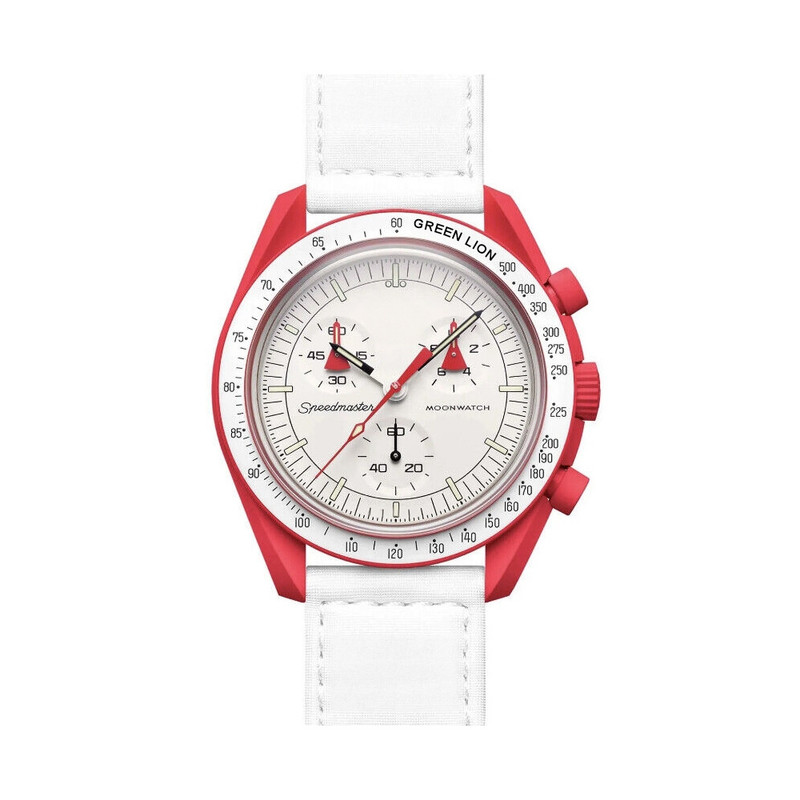 رنگ داخلی ساعت سفید و رنگ بدنه قرمز روشن و بند سفید میباشد.