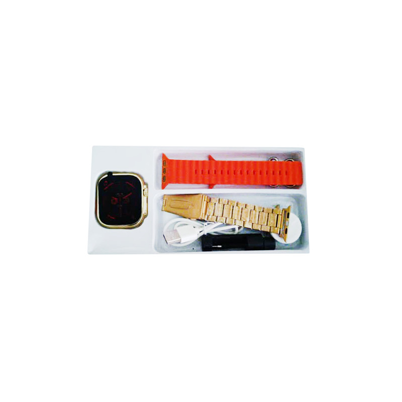 اقلام همراه : یک بند نارنجی سیلیکونی اوشن لوپ، و یک بند طلایی رولکس طلایی، شارژر وایرلسی